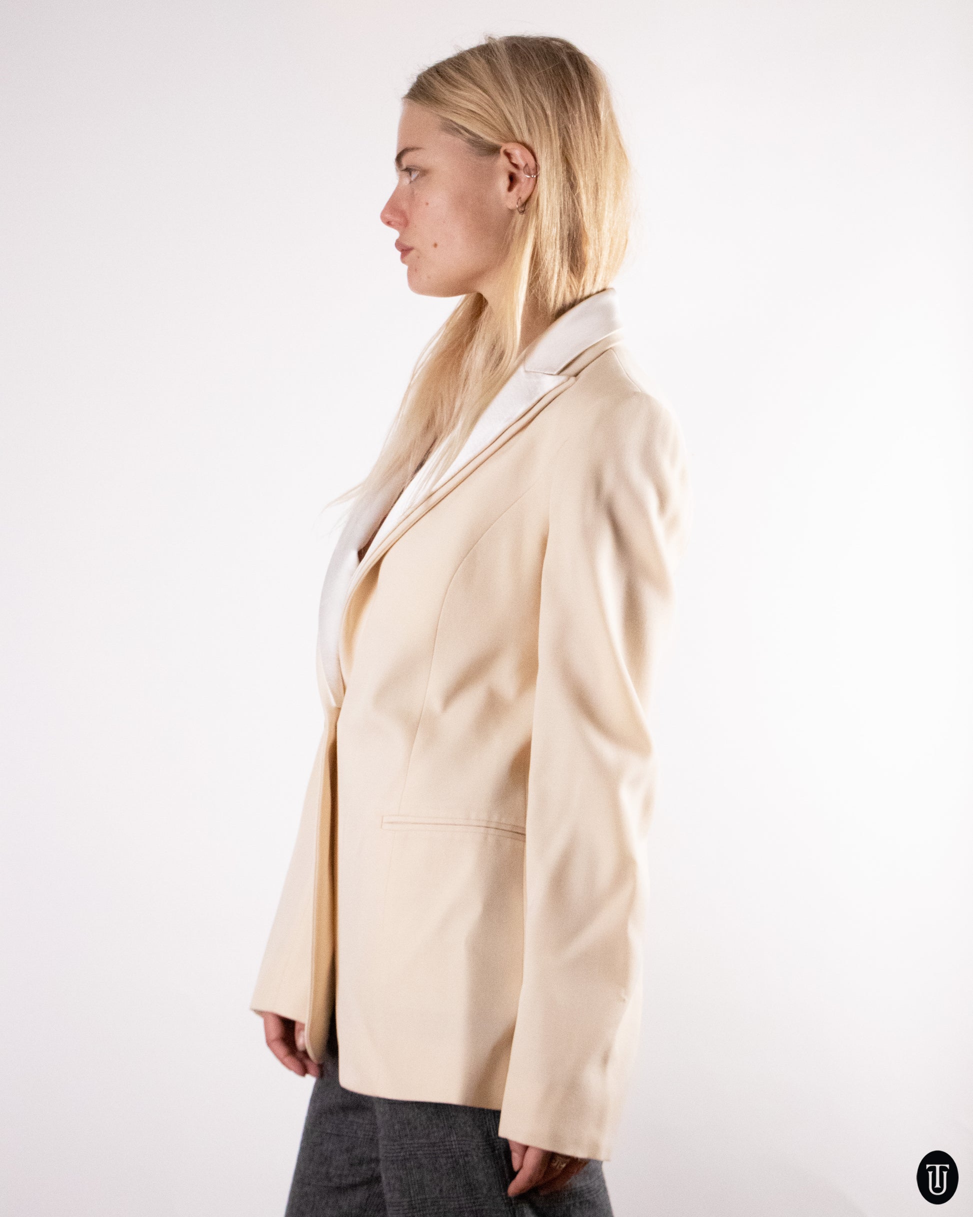 This 2000s Valentino blazer embodies the house’s refined approach to modern tailoring. Crafted from a luxurious cream wool blend, it features a sculpted single-button silhouette. Impeccably cut and gently structured, it’s a sophisticated eveningwear piece that elevates any wardrobe with effortless Italian elegance.