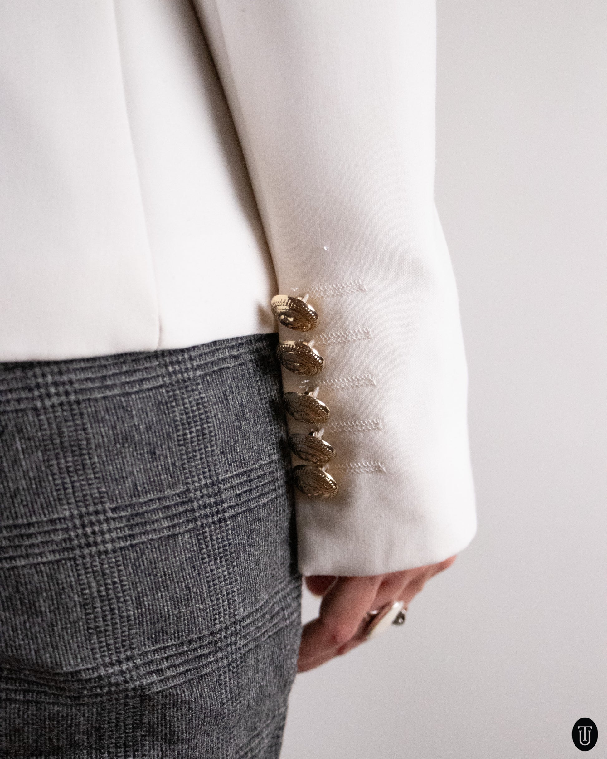 This 2000s Balmain blazer is crafted from a refined cotton- and wool-blend. The fabric holds a sharp, sculpted silhouette through the shoulders and waist while remaining comfortable. Polished double-breasted buttons and clean lapel lines highlight precise tailoring and disciplined construction. Elegant yet assertive, it reflects Balmain’s signature approach to modern power dressing grounded in material quality.