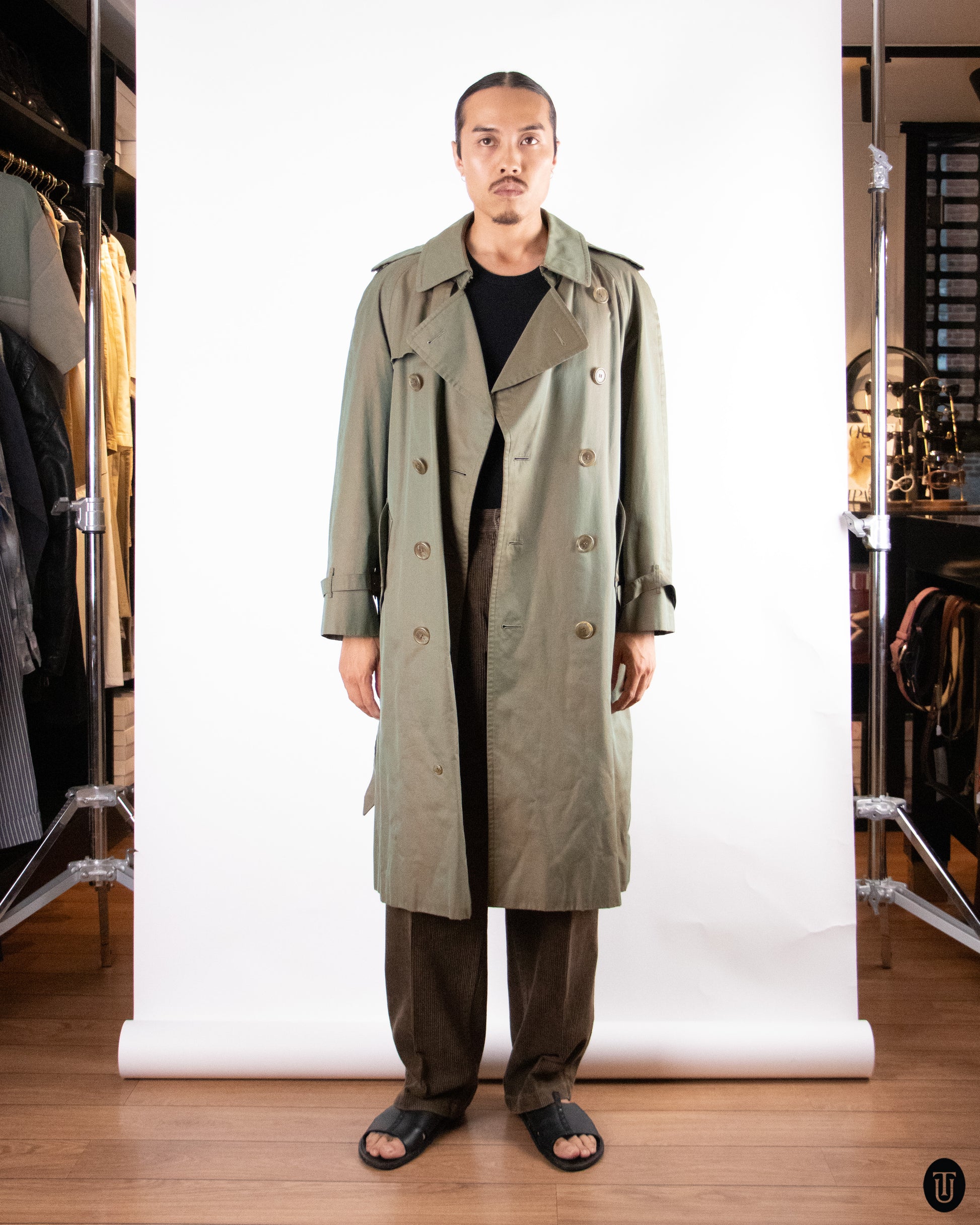 70's Burberry Khaki Sheen Trench Coat S