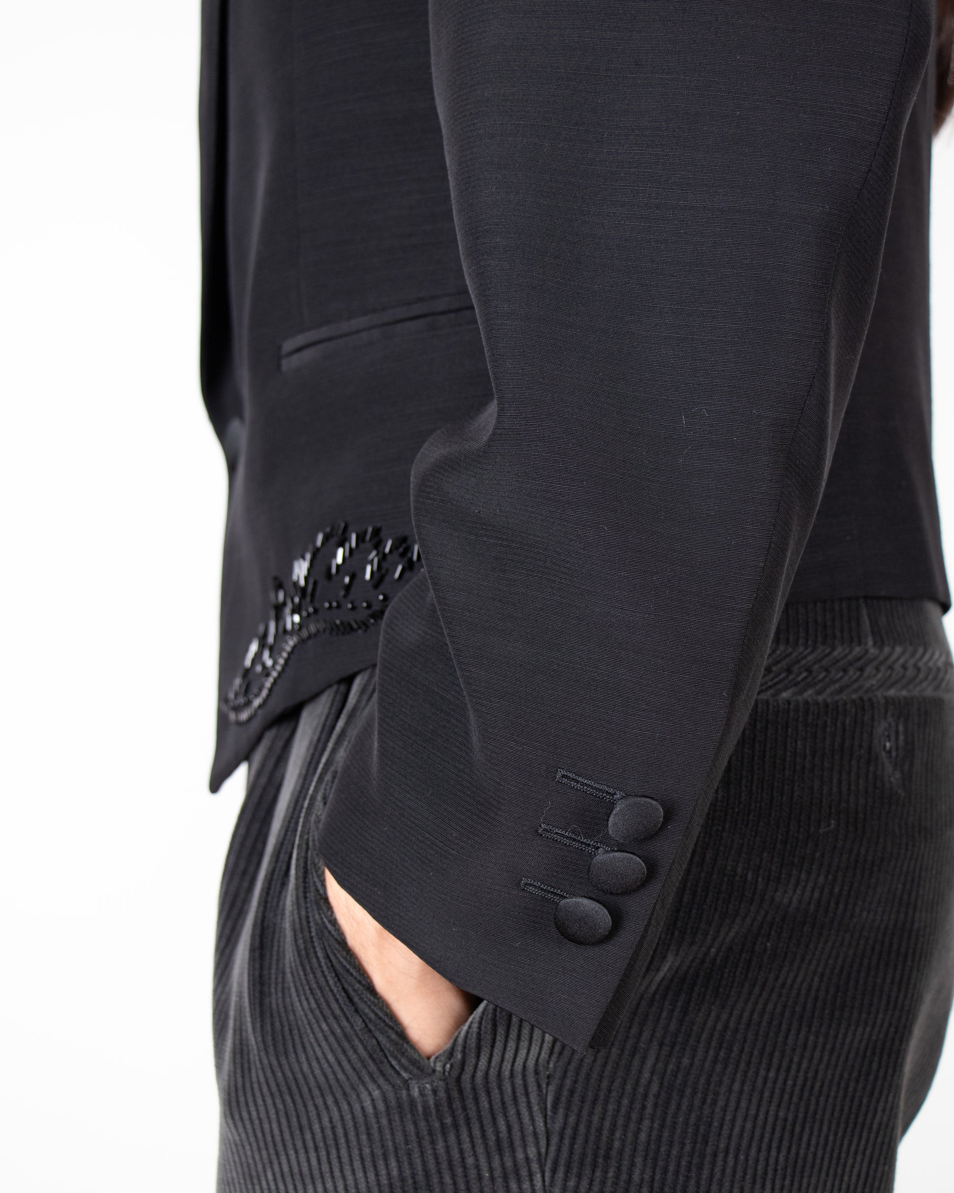 00's Tailored Italian Black Embellished Tuxedo blazer S