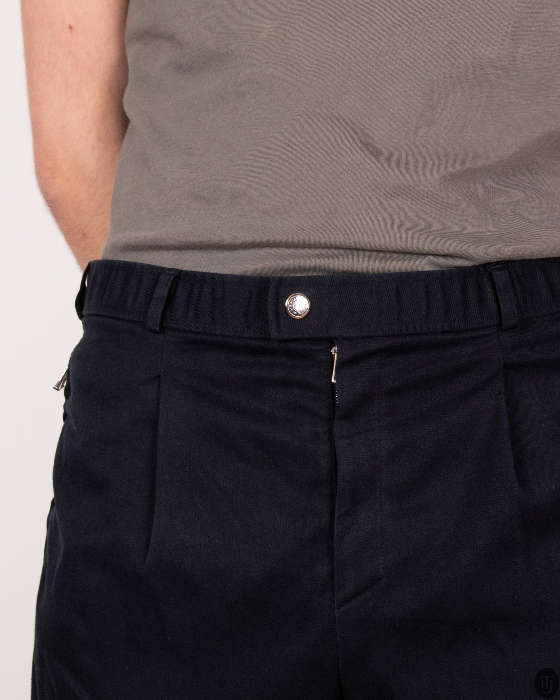 These late 2000's Hermès trousers are an homage to their equestrian heritage. The trousers are a tapered skinny fit, and feature neon orange lining on the hem, as well as navy knee patches. The zippered pockets, and zipper closure add to easy to wear element of the trousers and make them a versatile piece for the wardrobe.