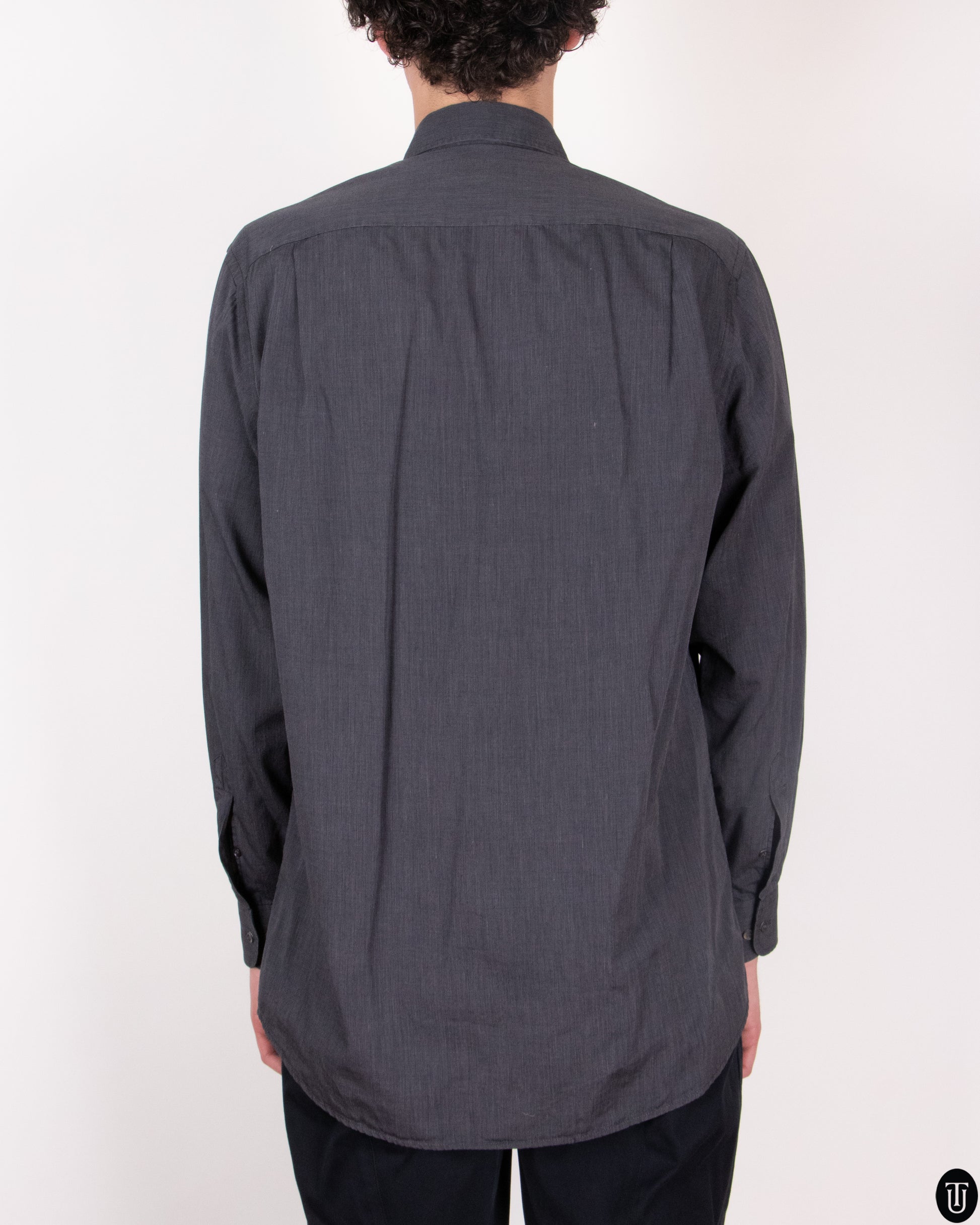 This 1990s Valentino shirt is crafted from a fine, lightweight cotton in a deep charcoal tone, offering understated elegance with a subtle texture. It features a classic button-down collar, single chest pocket, and a relaxed fit that blends refinement with casual ease. Minimalist yet impeccably tailored, it’s a versatile staple from the house’s menswear collection.
